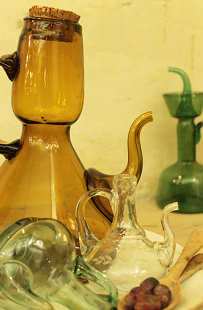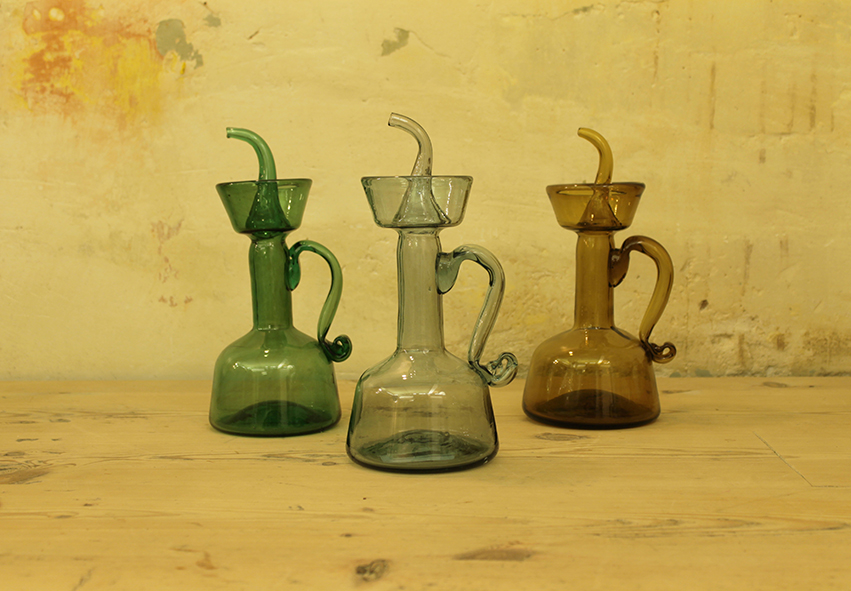 “A finals de novembre arreplegaràs l’oliva sempre”, is a well-known Catalan saying which clearly indicates the picking time for olives: always between late November and December. Later on, in January, the recently made olive oil is displayed and tasted from the best blown glass oil bottles. So we want to show you suitable oil bottles to keep the golden liquid.